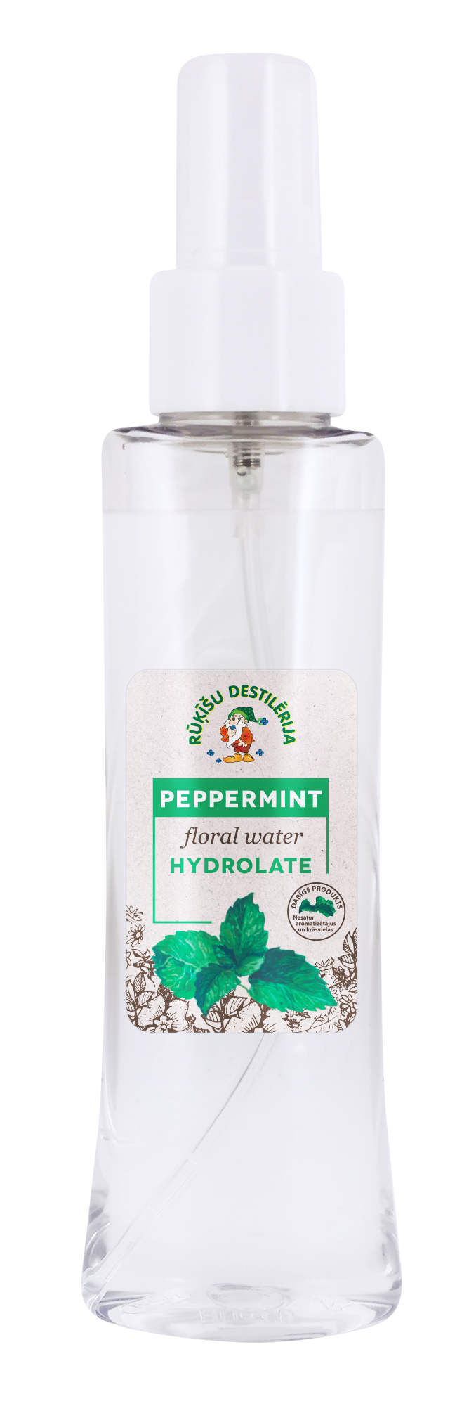 Piparmētras ziedūdens iegūts, izmantojot tvaika destilācijas metodi no Latvijā audzētas piparmētras (Mentha piperita).